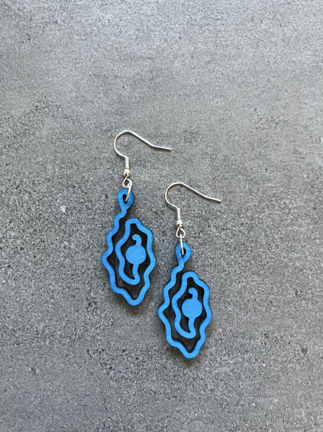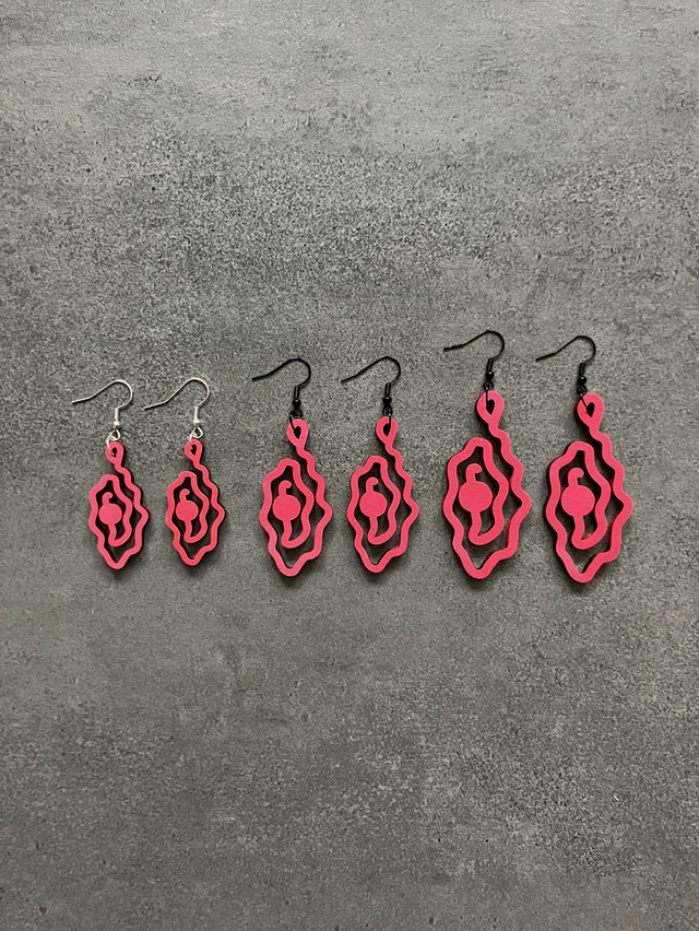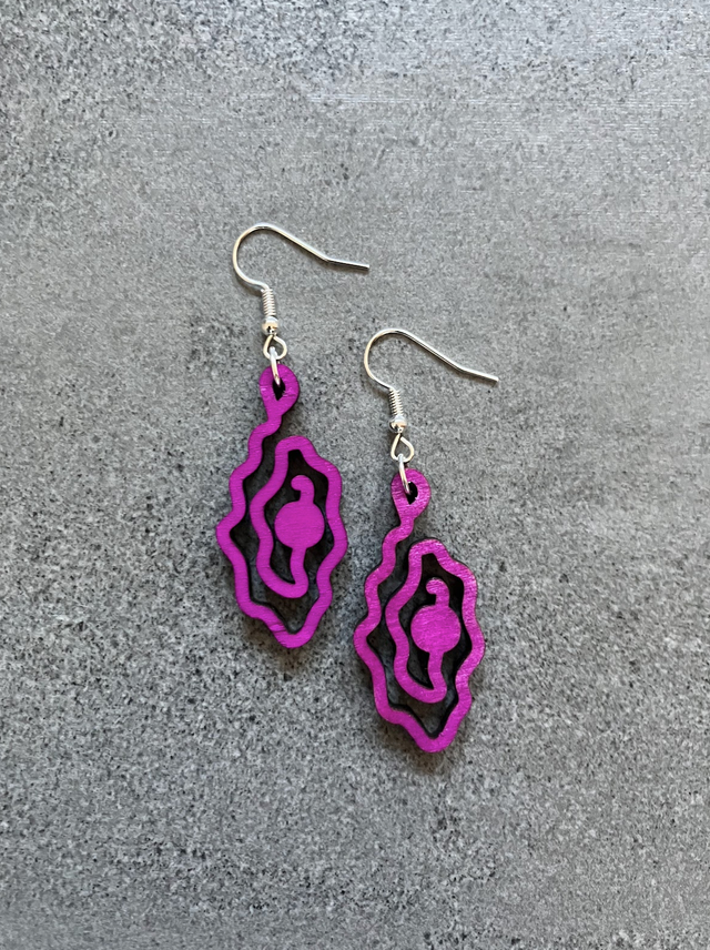 The vulva pearls laser-cut are handmade pieces of jewelry made of wood, elegant and easy to wear in the ear. I cut the vulva pearl I developed from wood and highlight the color of the pearl. Also with UV colour available.